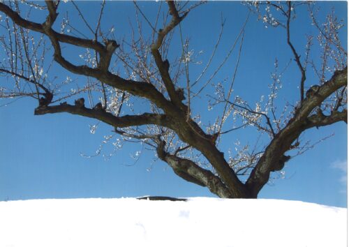 早春をいち早く告げる梅の開花に合わせるように雪が降る。