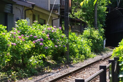 鎌倉 坂の下にある御霊神社周りには、 さまざまな紫陽花が競います